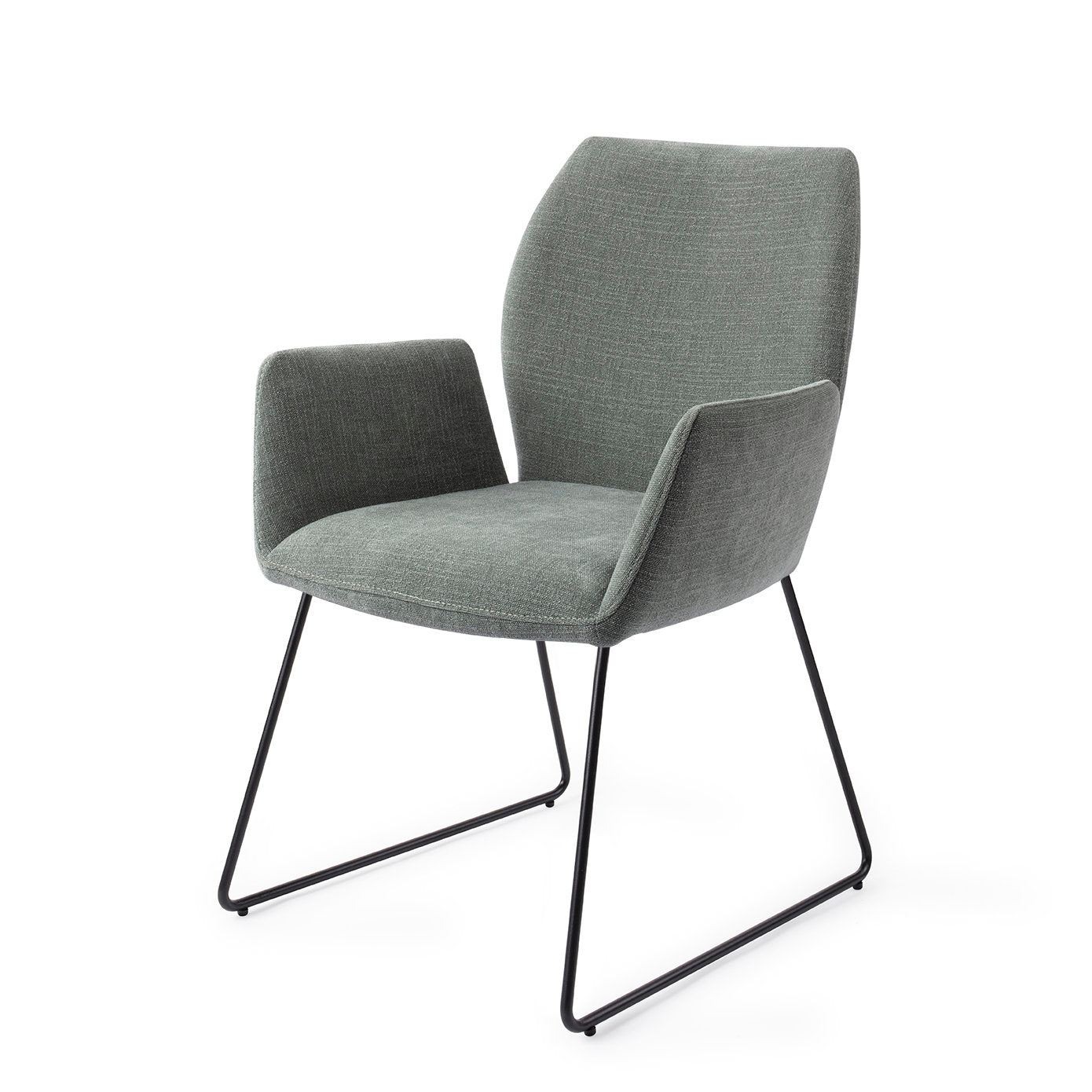 La chaise de salle à manger Misaki se caractérise par des accoudoirs légèrement détachés du dossier. Cela donne l'impression d'ailes qui s'étendent légèrement, conférant à la chaise un caractère aérien et libre. Les accoudoirs offrent également un soutien confortable. Nous sommes de grands fans de ce design propre et ordonné. La chaise est recouverte d'un tissu en polyester durable qui rappelle le tissu éponge luxueux. Prenez place et profitez !