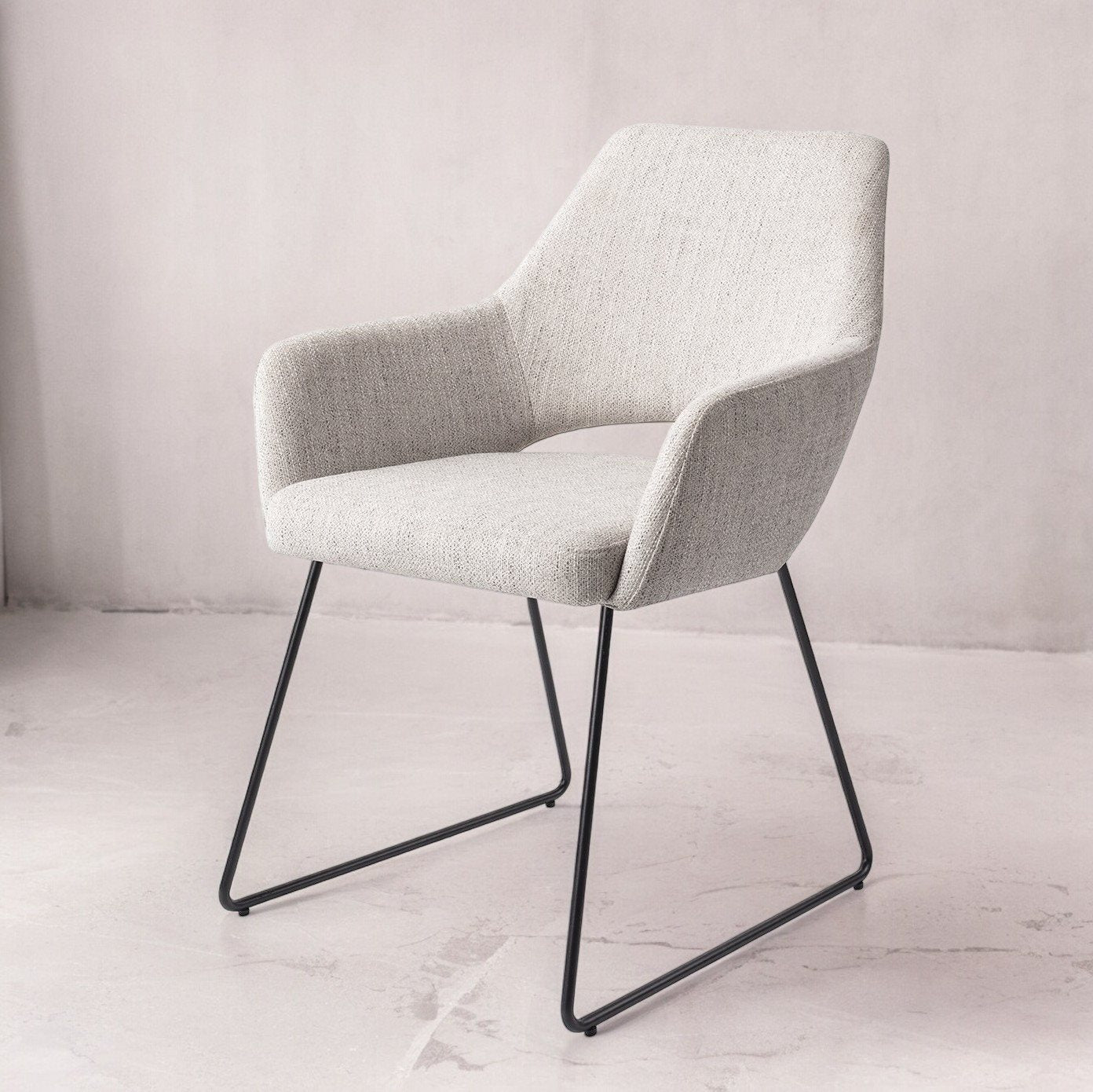 De Yanai eetkamerstoel heeft een licht en vrij ontwerp, dat wordt benadrukt door de subtiele inkeping in de rugleuning. De bekleding van deze stoel straalt een tijdloze elegantie uit, met een verfijnde combinatie van kleuren en texturen.