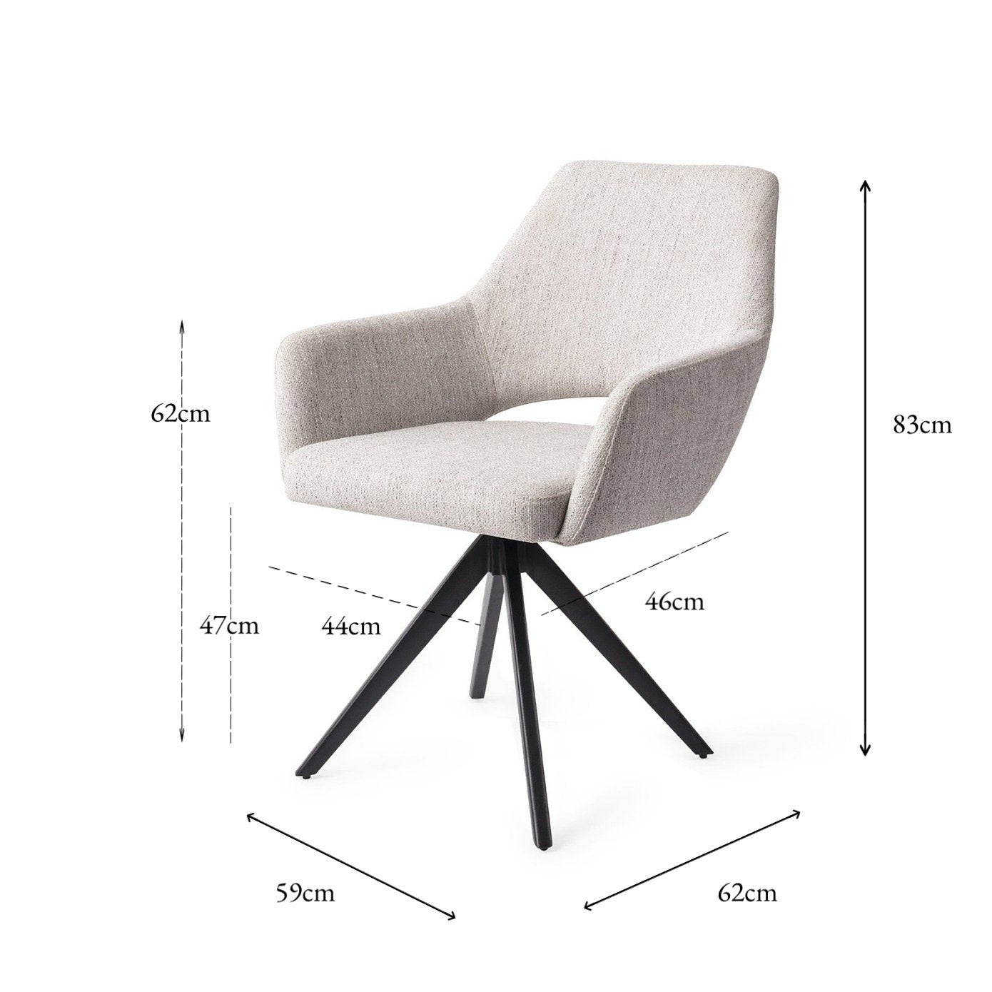 Armleuninghoogte (vloer tot bovenkant van armleuning): 62 cm